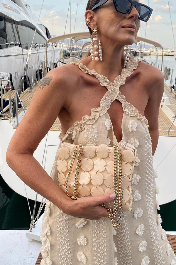 Sweet By The Sea Flower Decor Halter Maxi Dress