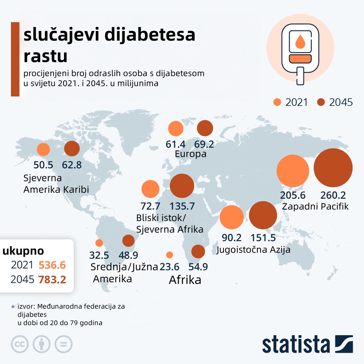 Prema podacima Svjetske zdravstvene organizacije, broj osoba s dijabetesom u svijetu svake godine raste za 3 %.